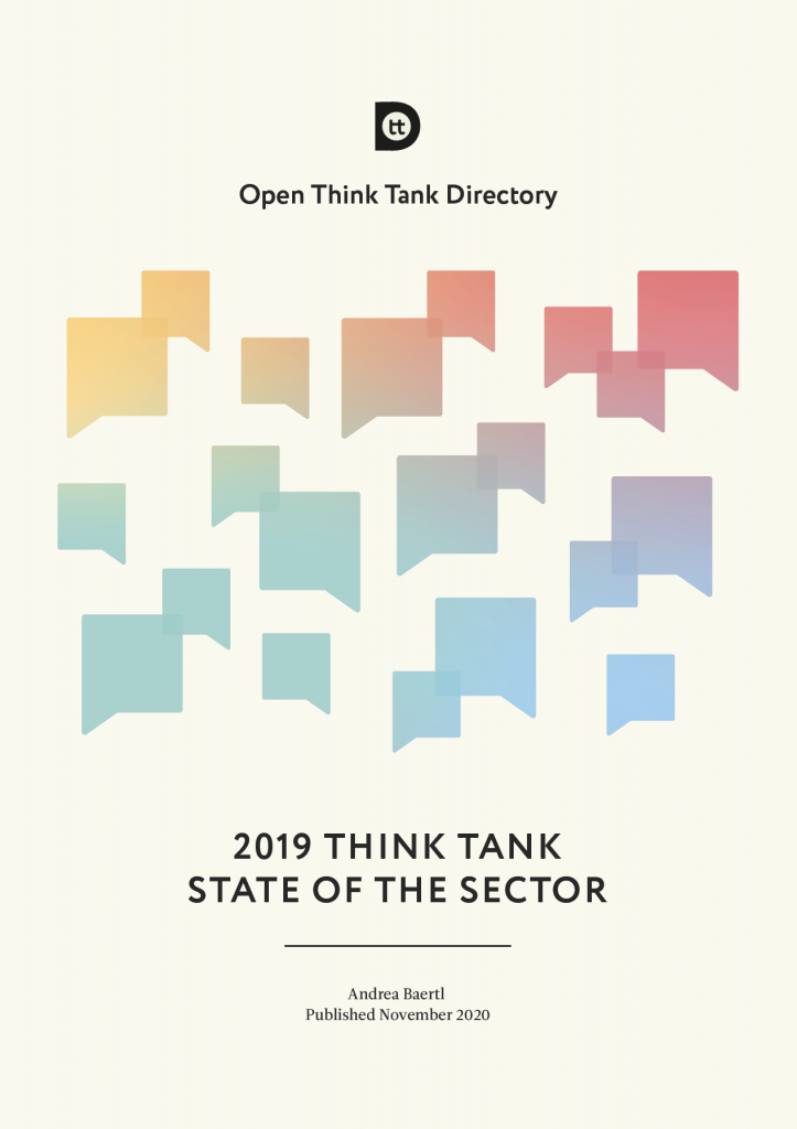 The first think tank state of the sector report, based on analysis of 2019 data of 2,802 active think tanks from the Open Think Tank Directory, provides an overview of the sector and uncovers underlying trends. The findings (representative at the sample level)  help answer questions such us: what are the most common topics think tanks work on? What’s the average age, or the median staff size or annual turnover of a think tank? How many female versus male think tank founders and leaders are there? How does this vary between regions and business models?