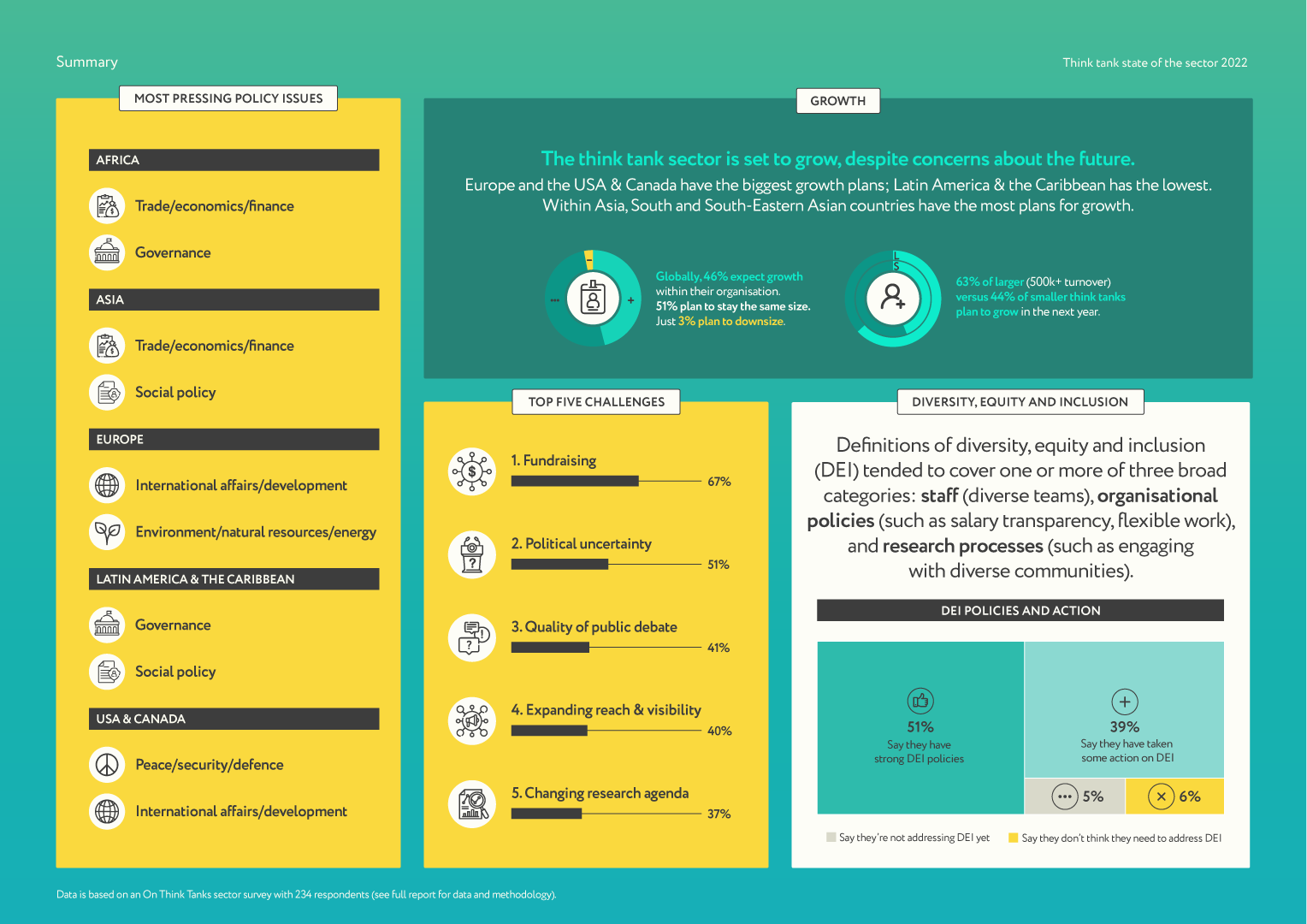 An annual snapshot of the think tank sector worldwide, drawing on data from the Open Think Tank Directory and the On Think Tanks sector survey.