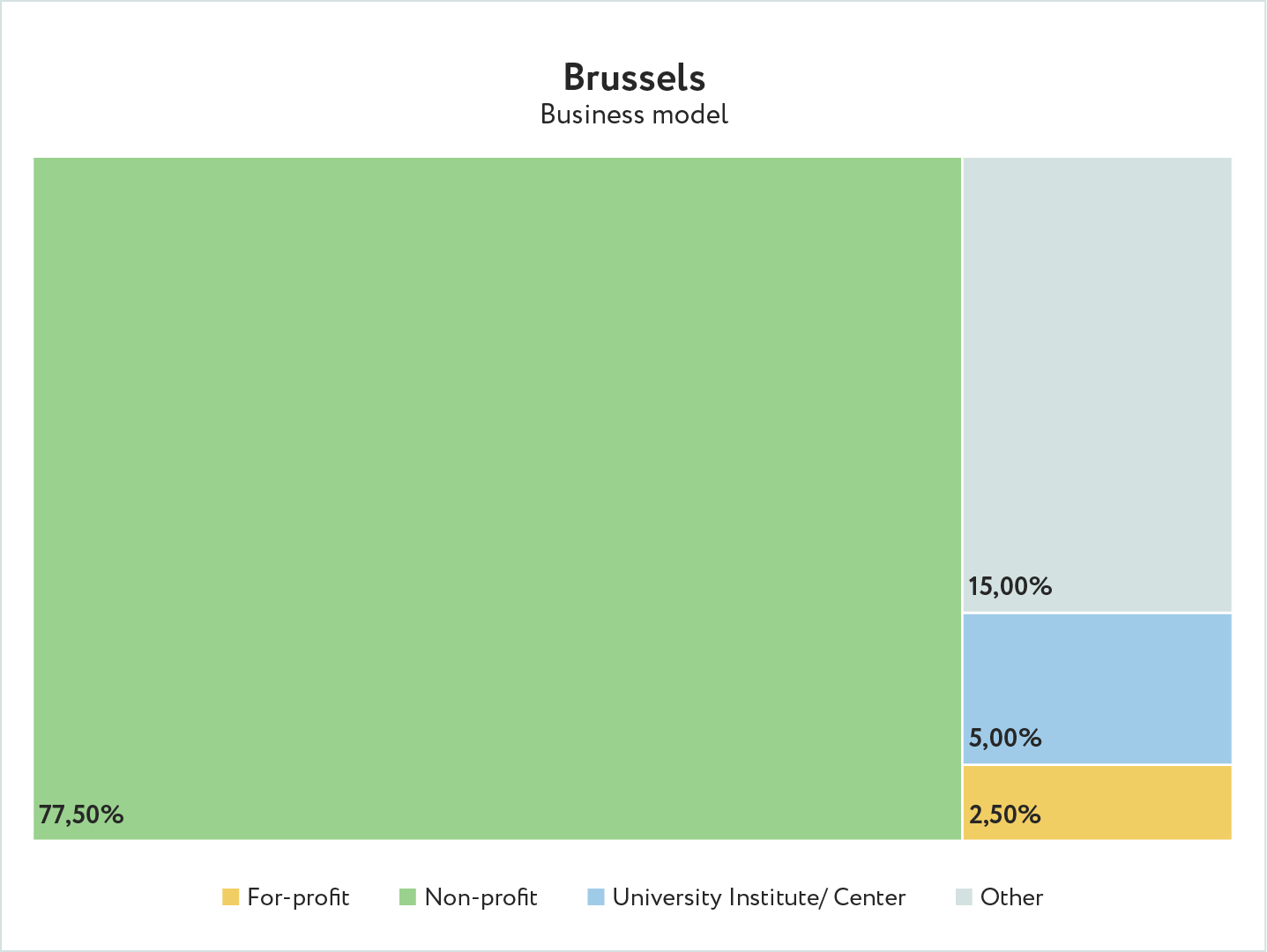 - Business models: Non-profit (68.80%), university institute/centre (4.4%) & for-profit (2.22%)