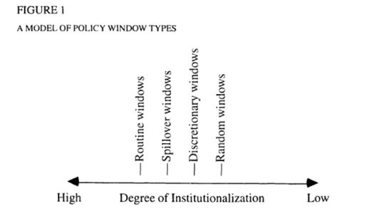 Let me start with some references on the concept of policy windows. One of its main scholars was Kingdon, who said that these windows are