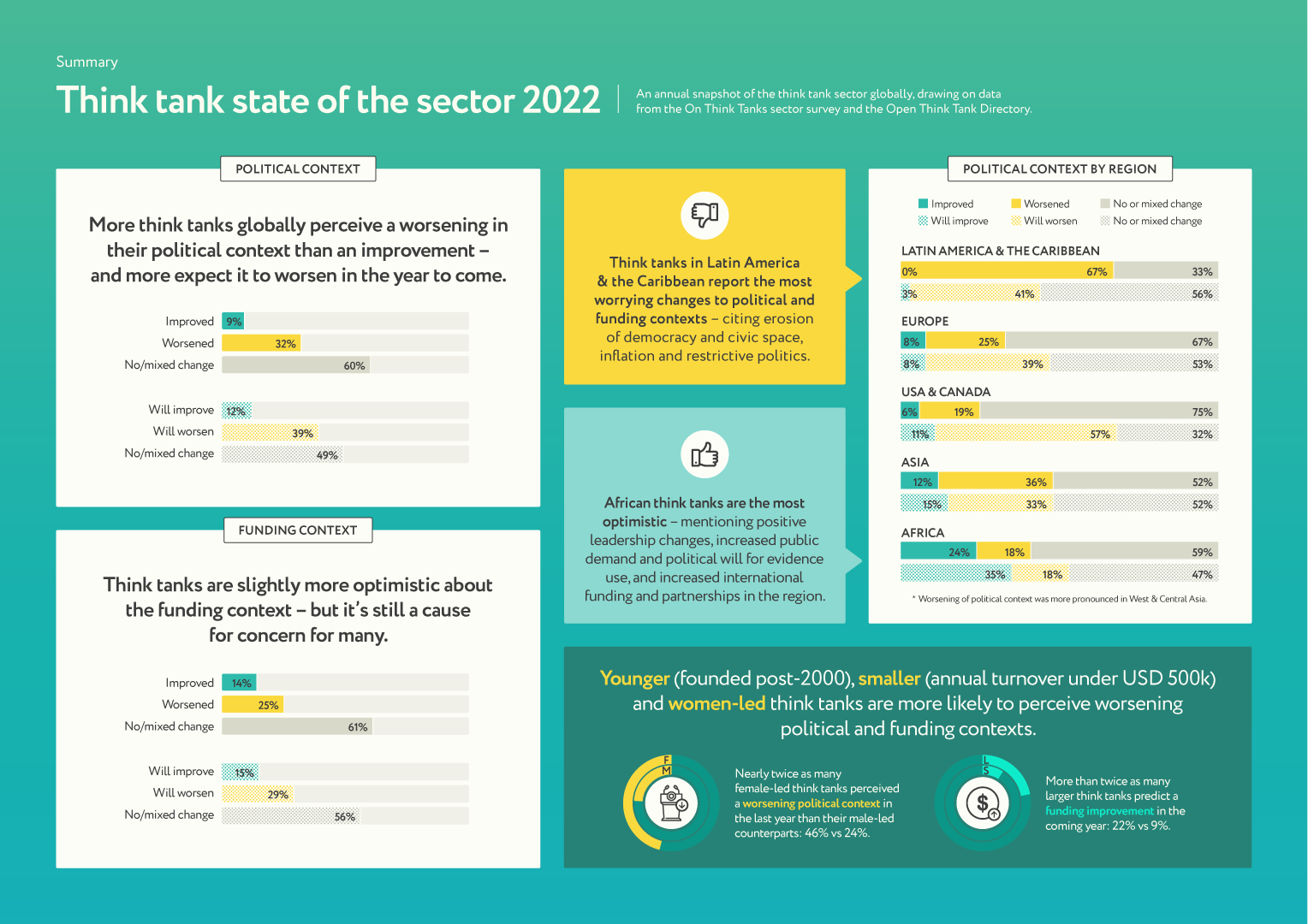 An annual snapshot of the think tank sector worldwide, drawing on data from the Open Think Tank Directory and the On Think Tanks sector survey.