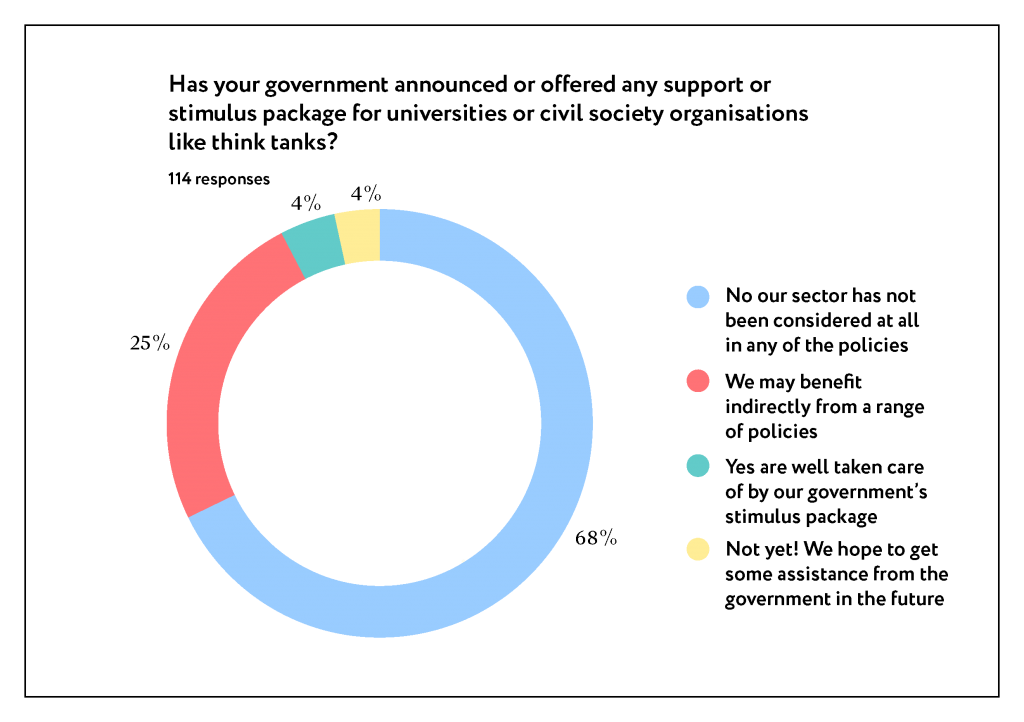 In future surveys we hope to find out how many countries provided support to think tanks and policy research centres, and what kind of stimulus packages or policies worked best.
