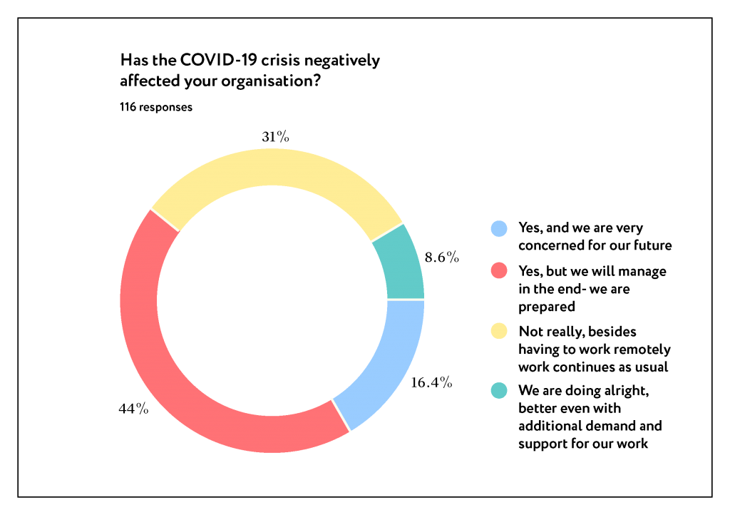 Only a few have taken the decision to lay-off staff. Many are expecting additional support from their usual funders or government stimulus packages to help them weather the storm in the coming months.