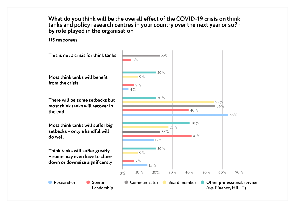 On the other hand, a little over 10% of the sample considered that this was either not a crisis for think tanks (4.3%) or that they would benefit as a consequence of the crisis (6.9%).